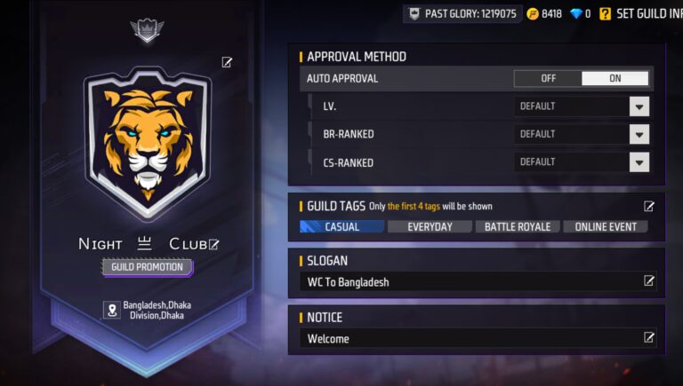 ২০১৯ সালের গিল্ড ৮ ডিজিটের আইডি। ১ মিলিয়ন+ গ্লোরি তখনকার সময়ে। Guild Uid: 67226414